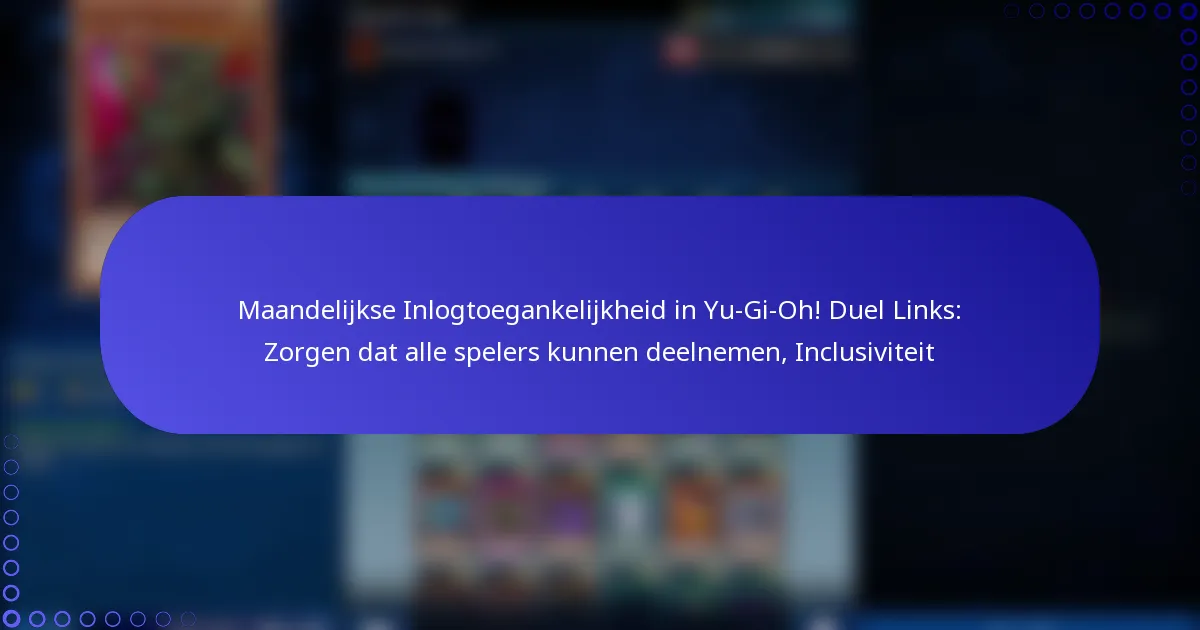 Yu-Gi-Oh! Duel Links heeft verschillende inclusiviteitsinitiatieven geïmplementeerd voor zijn maandelijkse inlogsysteem om ervoor te zorgen dat alle spelers volledig kunnen deelnemen. Deze initiatieven richten zich op toegankelijkheid, betrokkenheid en gemeenschapssteun, waardoor het spel gastvrijer wordt voor diverse doelgroepen.